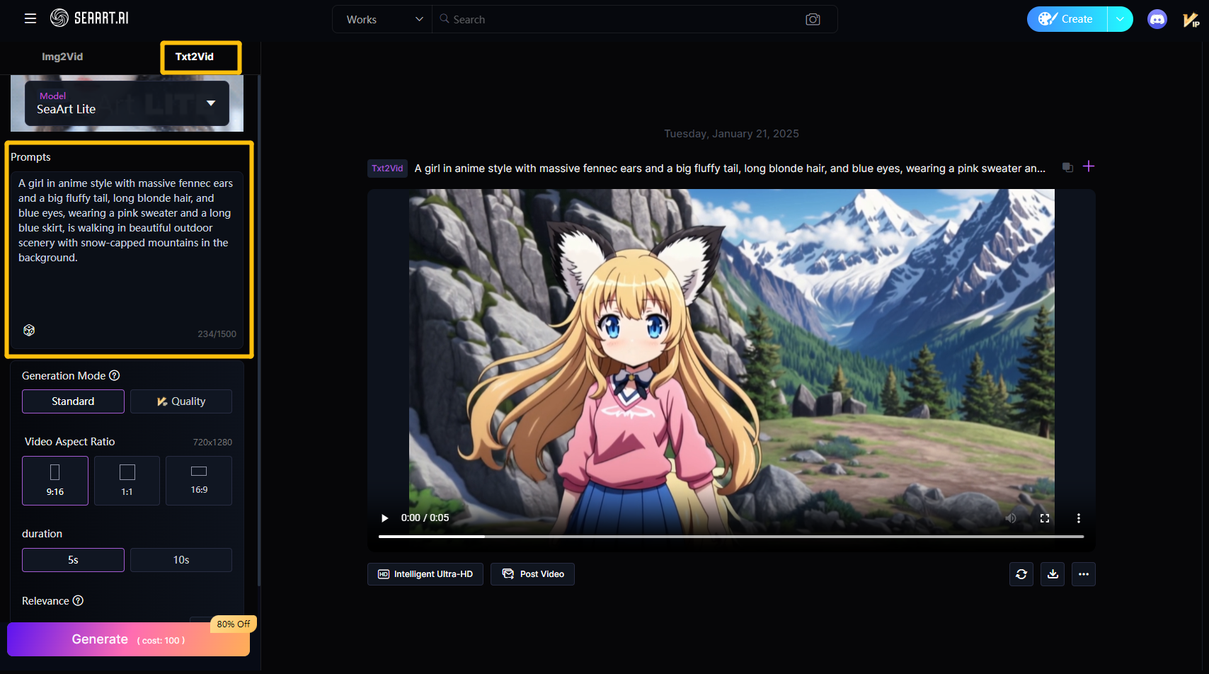Simply input a piece of text, and SeaArt can accurately generate corresponding video scenes based on your description. Whether it's a complex scene setting or a simple creative idea, it efficiently transforms your words into vivid, lifelike dynamic visuals.