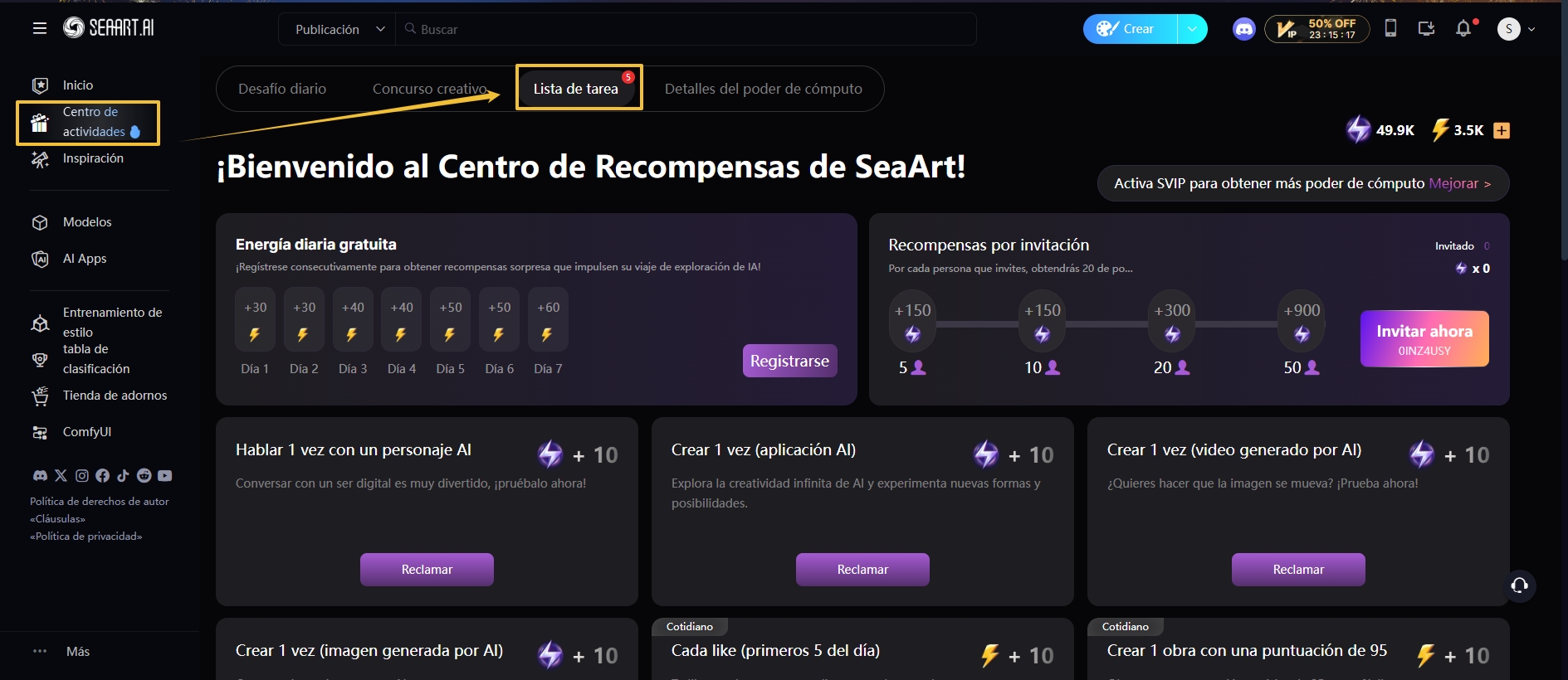Programa de Incentivos para Creadores de SeaArt.AI4.6 Tareas