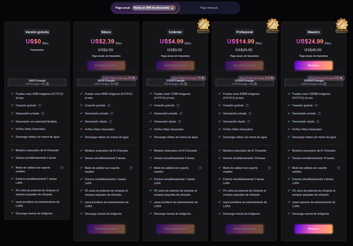 Recarga de créditos: La potencia de créditos se puede utilizar para el entrenamiento de modelos, la creación de IA y el uso de modelos de pago, y nunca caducan.