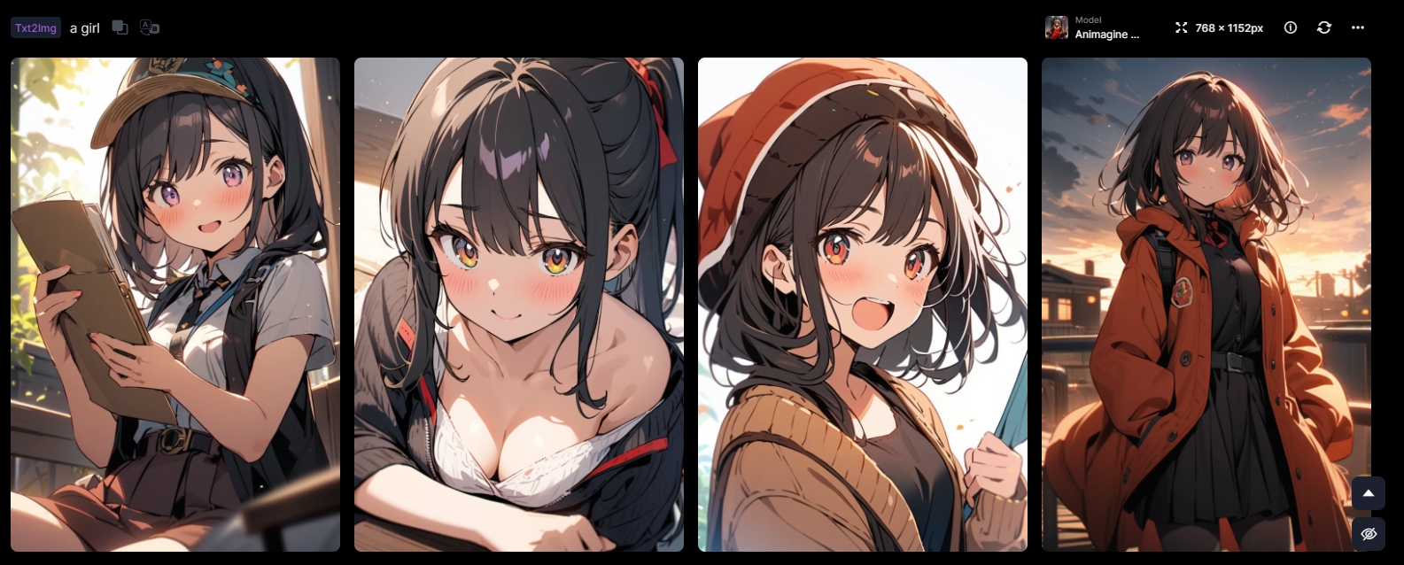 Por ejemplo, si el prompt simplemente es “una niña”, no menciona la vestimenta de la niña, la escena, el ángulo de la cámara, etc., y la IA solo puede basarse en su experiencia de entrenamiento. Gracias a las capacidades del modelo, los resultados aún pueden ser bastante buenos. Sin embargo, si tienes requisitos específicos sobre el contenido de la pantalla, esa eficiencia es muy baja.