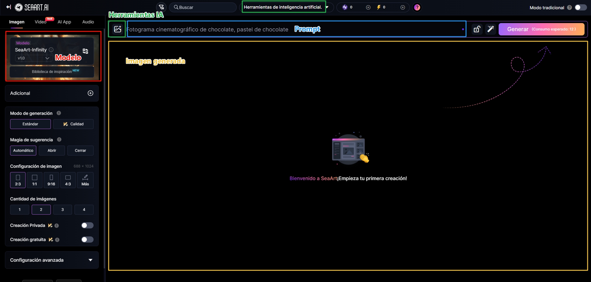 El modelo determina el estilo, los prompts definen el contenido de la imagen y los parámetros refinan las características preestablecidas de la imagen.