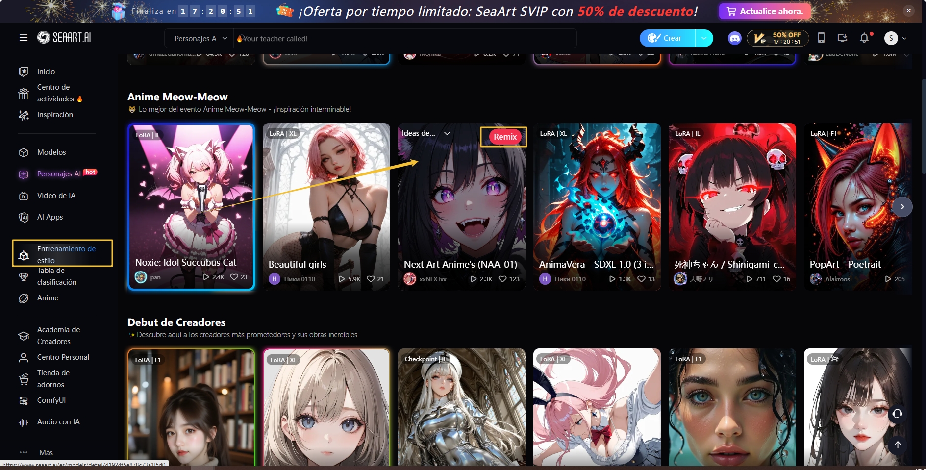 Entrada: Haz clic en “Entrenar” en la esquina superior izquierda de la página principal para acceder a la página de entrenamiento de estilos.