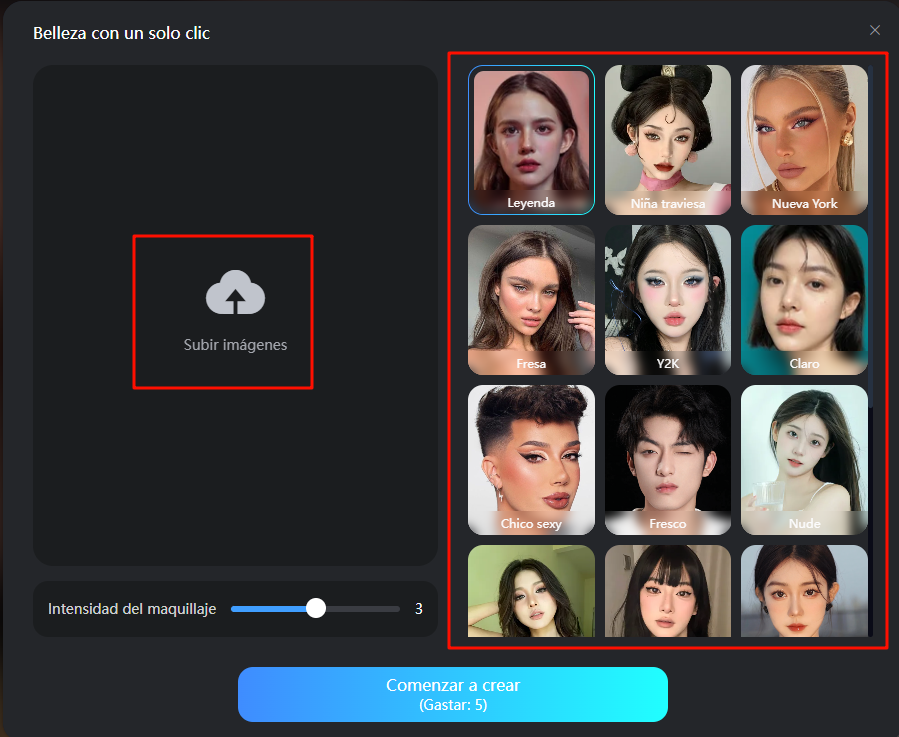 **Paso 3:** Ajusta la intensidad del maquillaje.