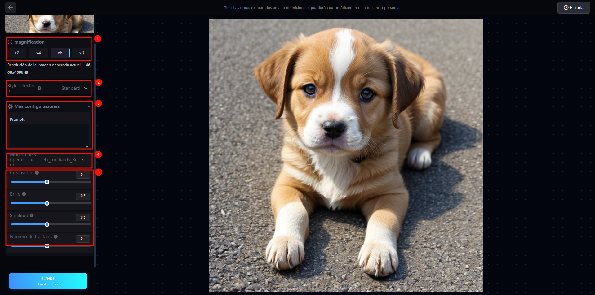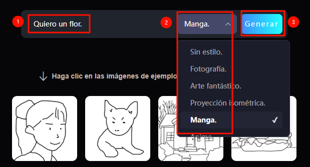 **Paso 2:** Introduce los prompts correspondientes, selecciona un estilo.