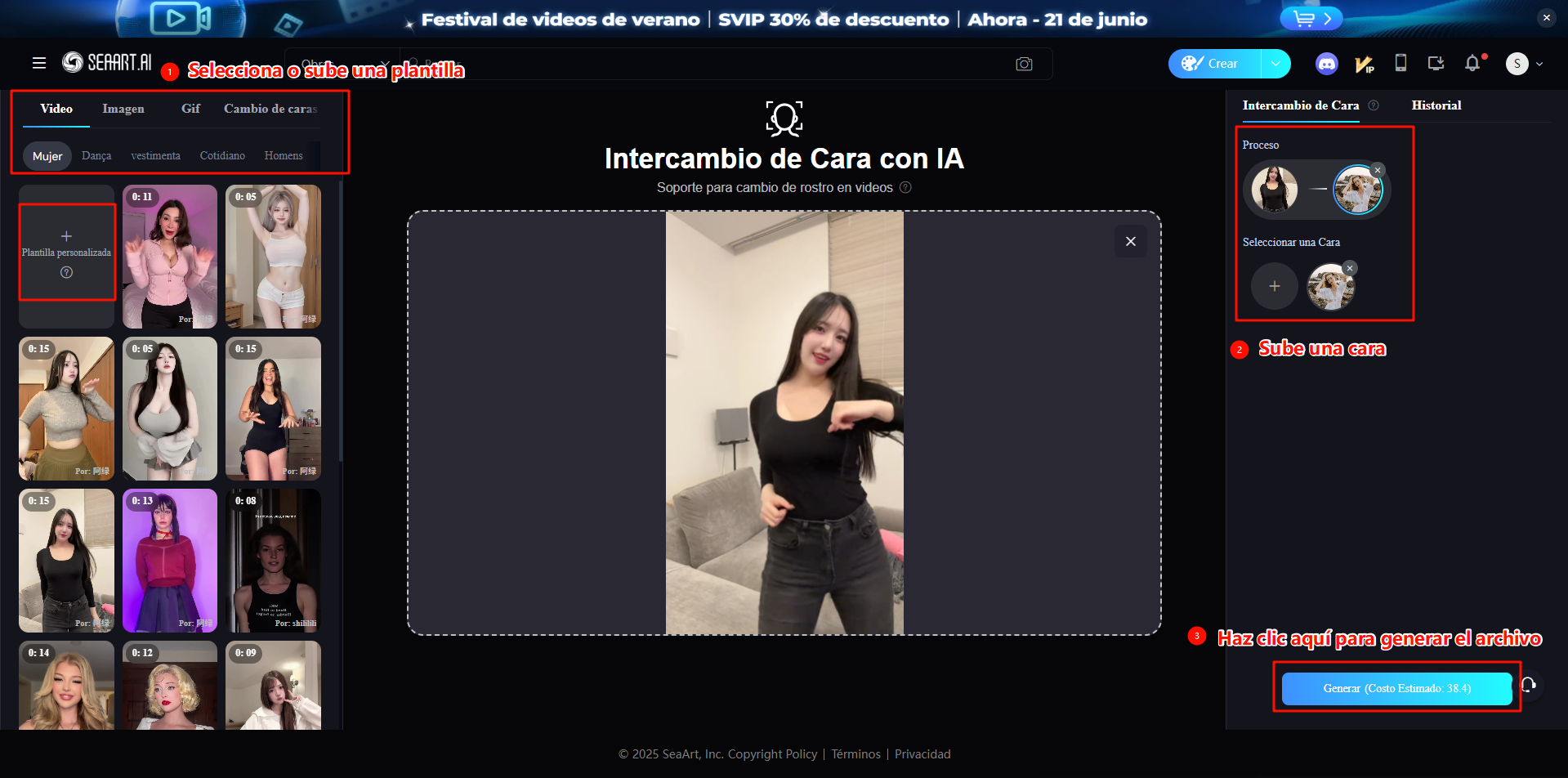 ### [Intercambio de caras con IA](https://www.seaart.ai/es/ai-tools/ai-face-swap)