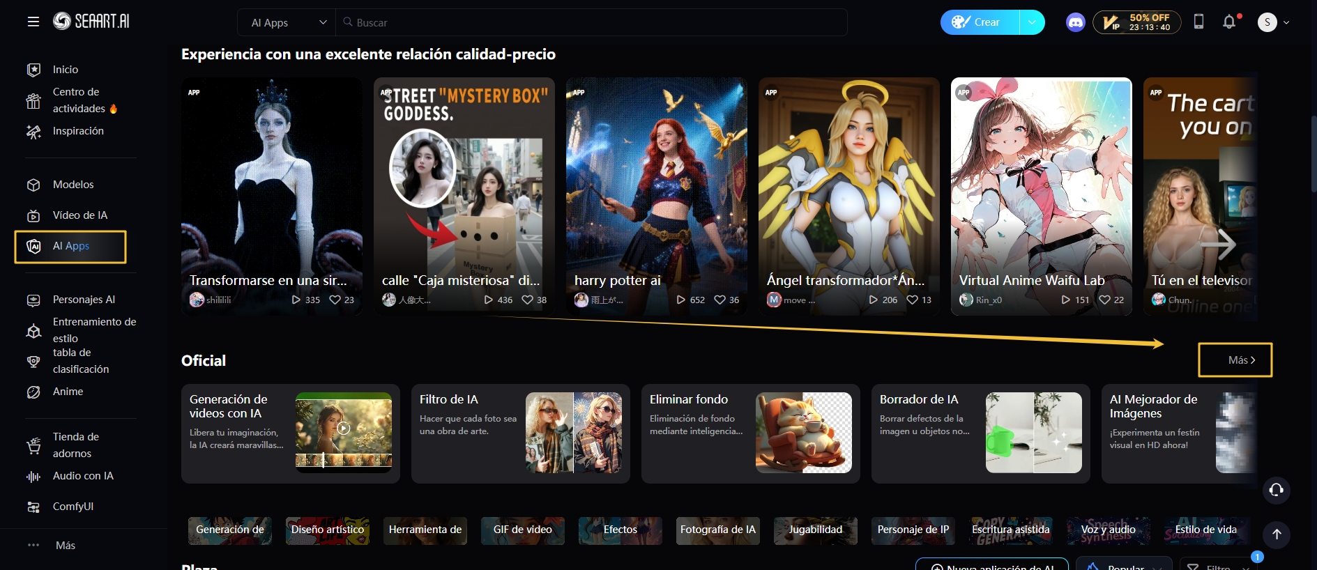 Entrada a la página: Haz clic en "AI Apps - Más"