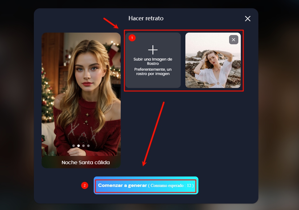 Paso 2: Sube tu imagen (puedes cambiar el estilo de maquillaje en el lado derecho).