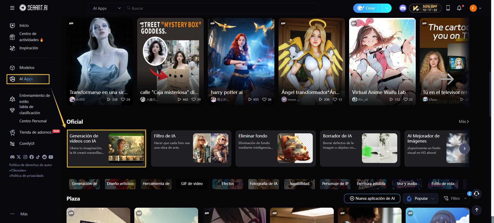 Haz clic en la esquina superior izquierda Apps IA y ve a la Generación de video con IA.