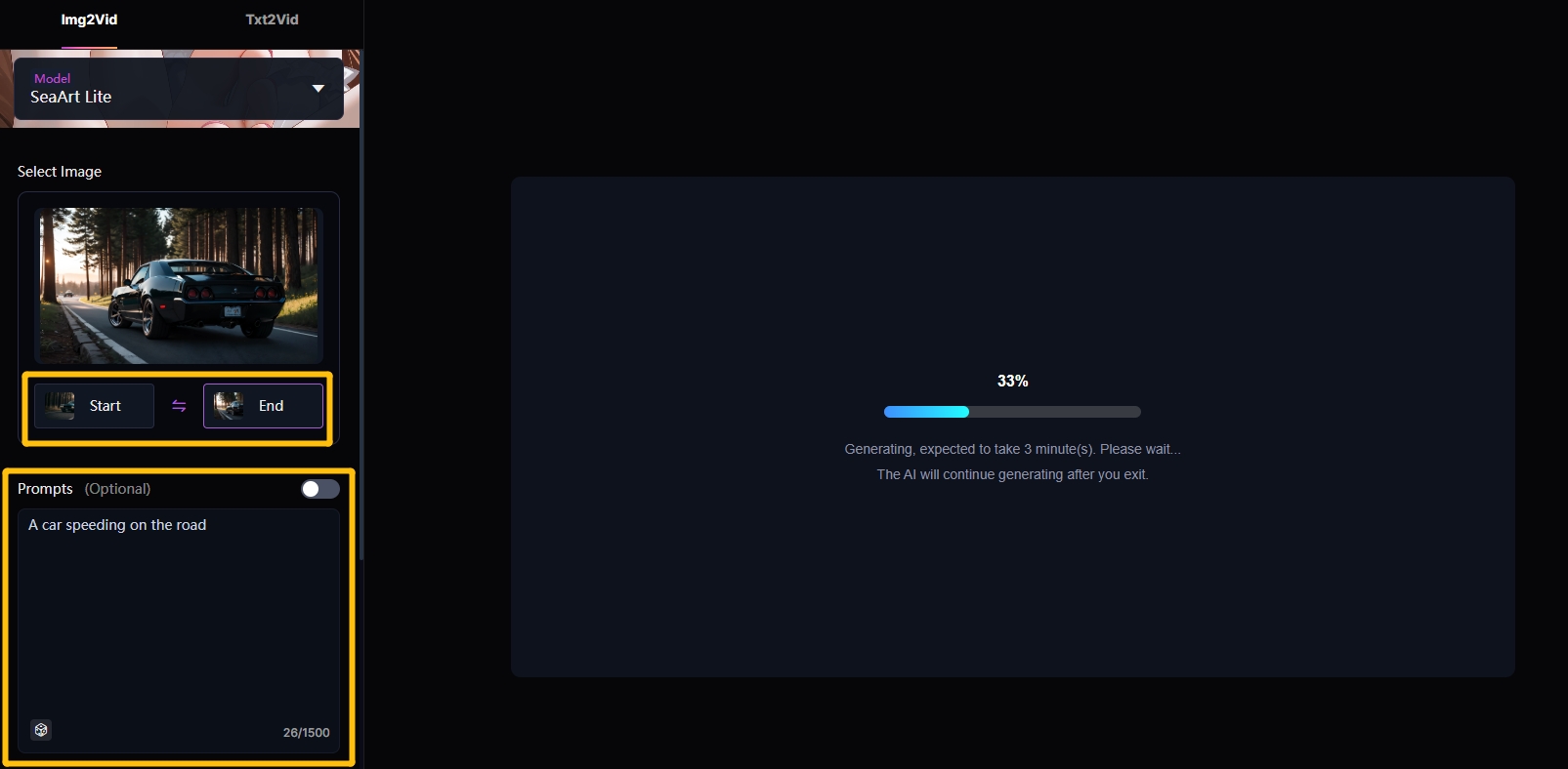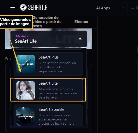 En el modelo de SeaArt Lite para imagen a video, admite controlar el primer y el último fotograma.
