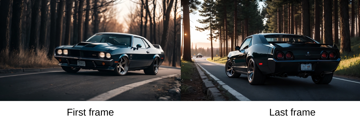 Cargando dos imágenes como primer y último fotograma, puedes generar un video con escenas de inicio y final controladas, asegurando transiciones dinámicas suaves.