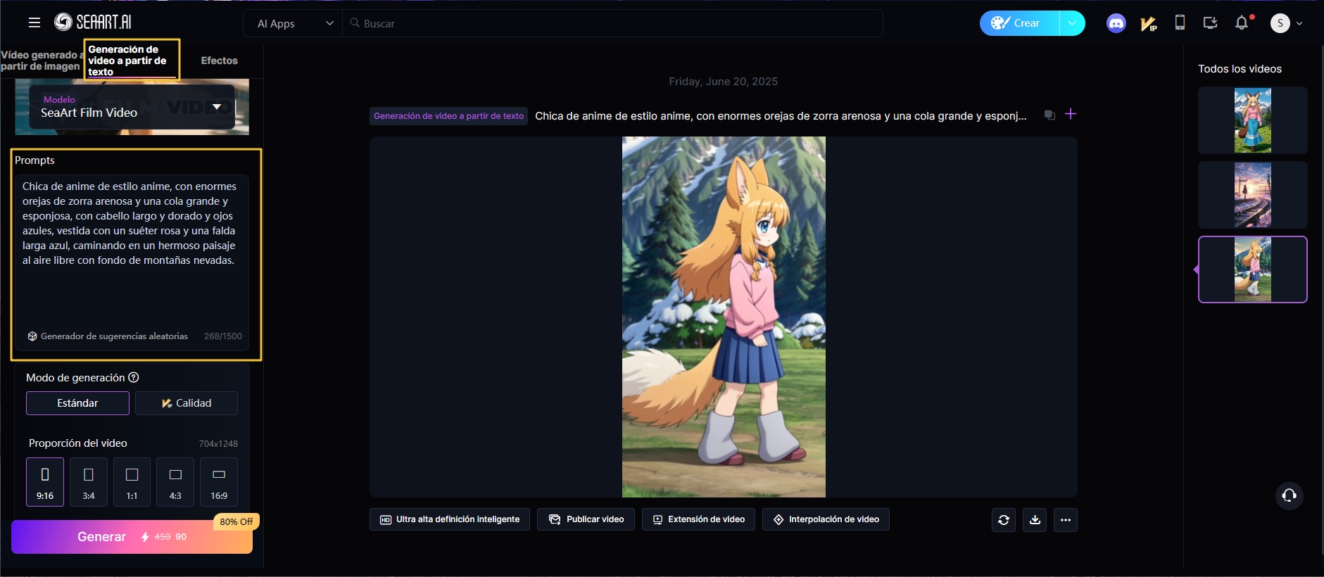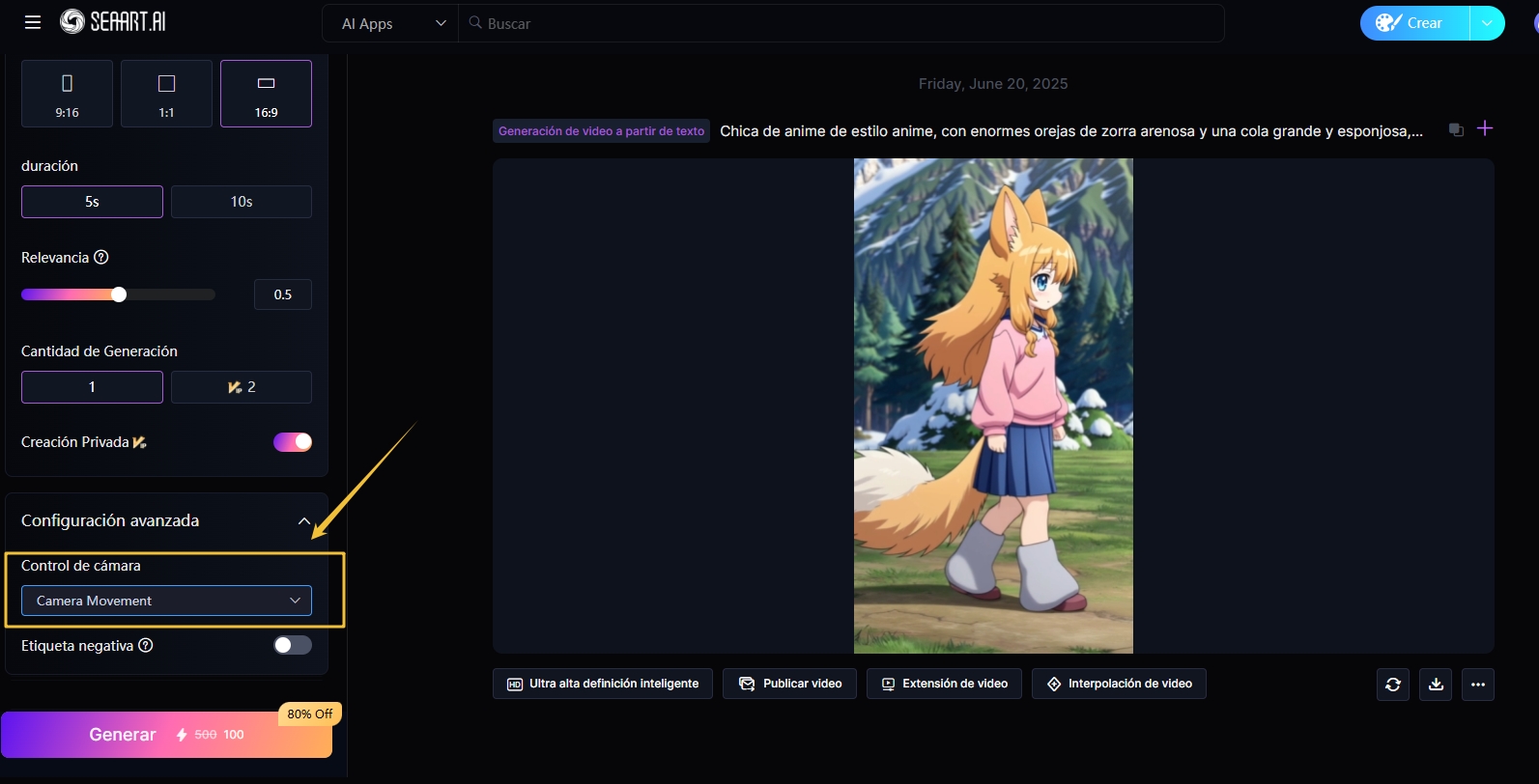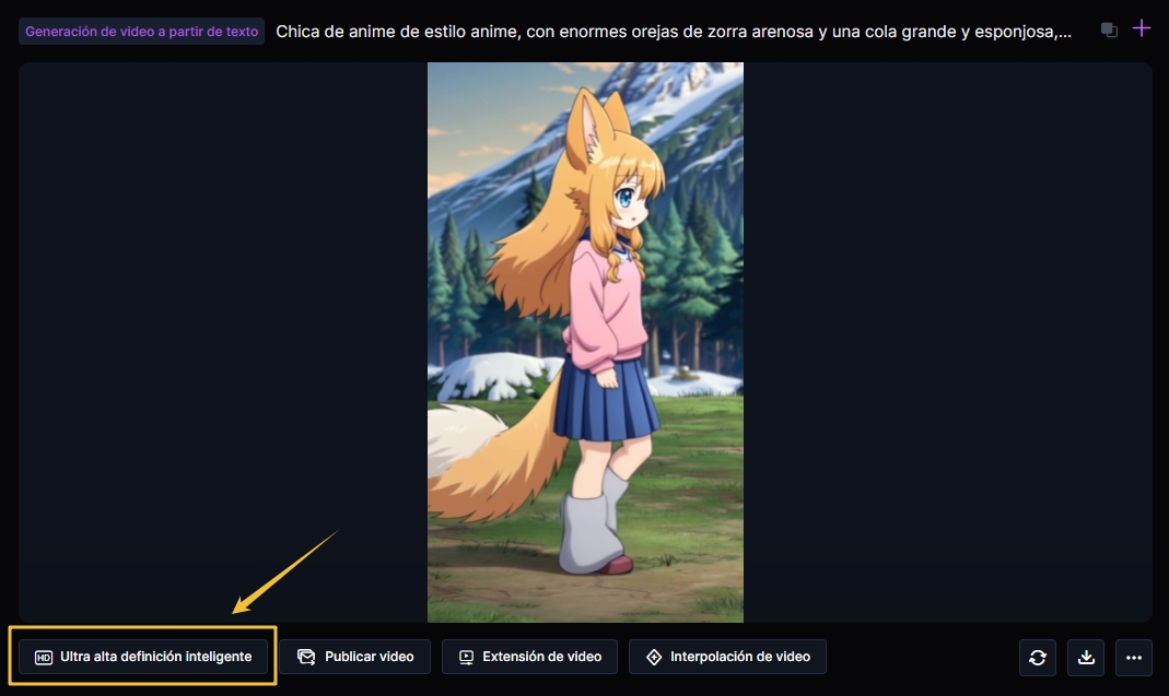 Movimiento de cámaraDespués de generar el video, haz clic en “Ultra alta definición inteligente” para obtener una versión más clara y detallada.