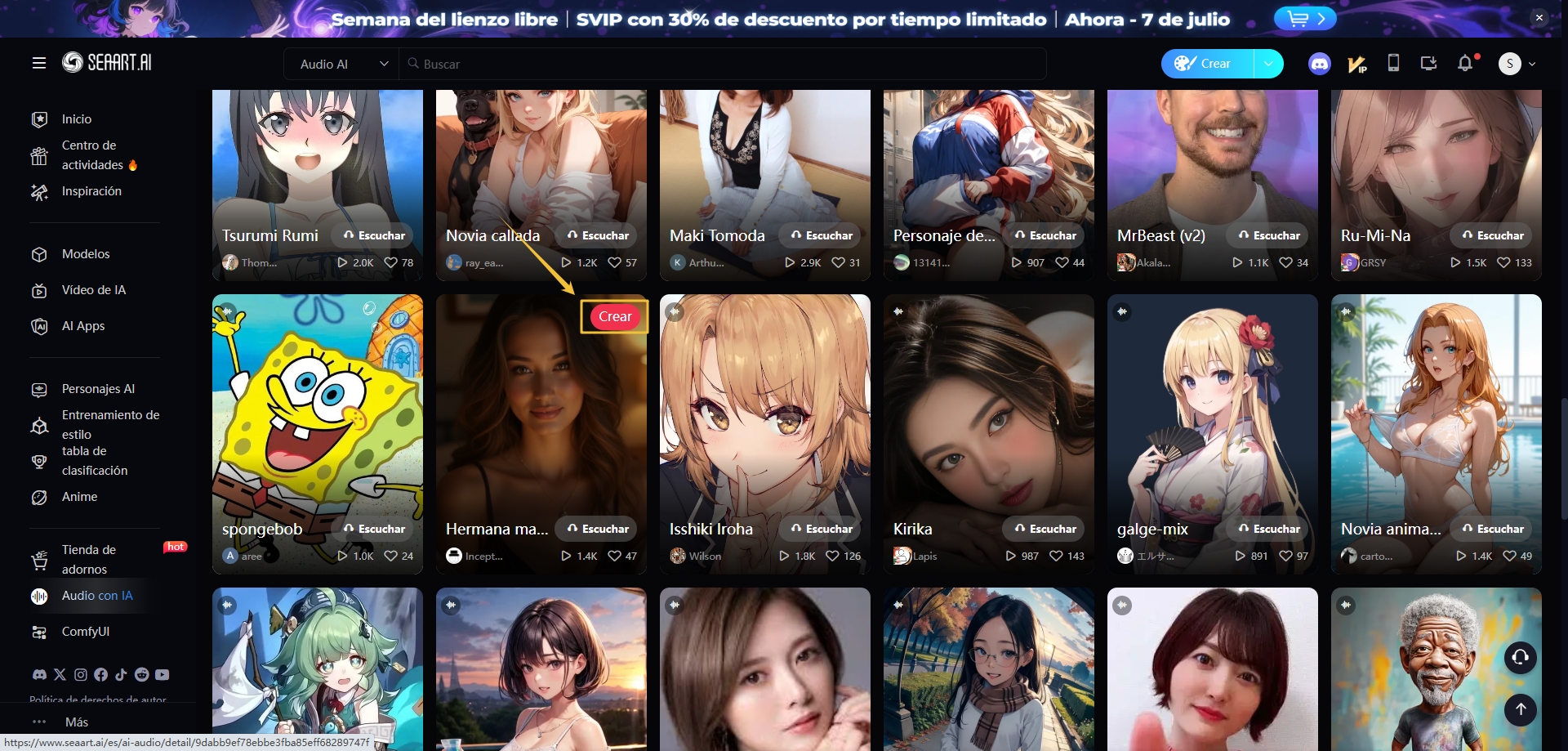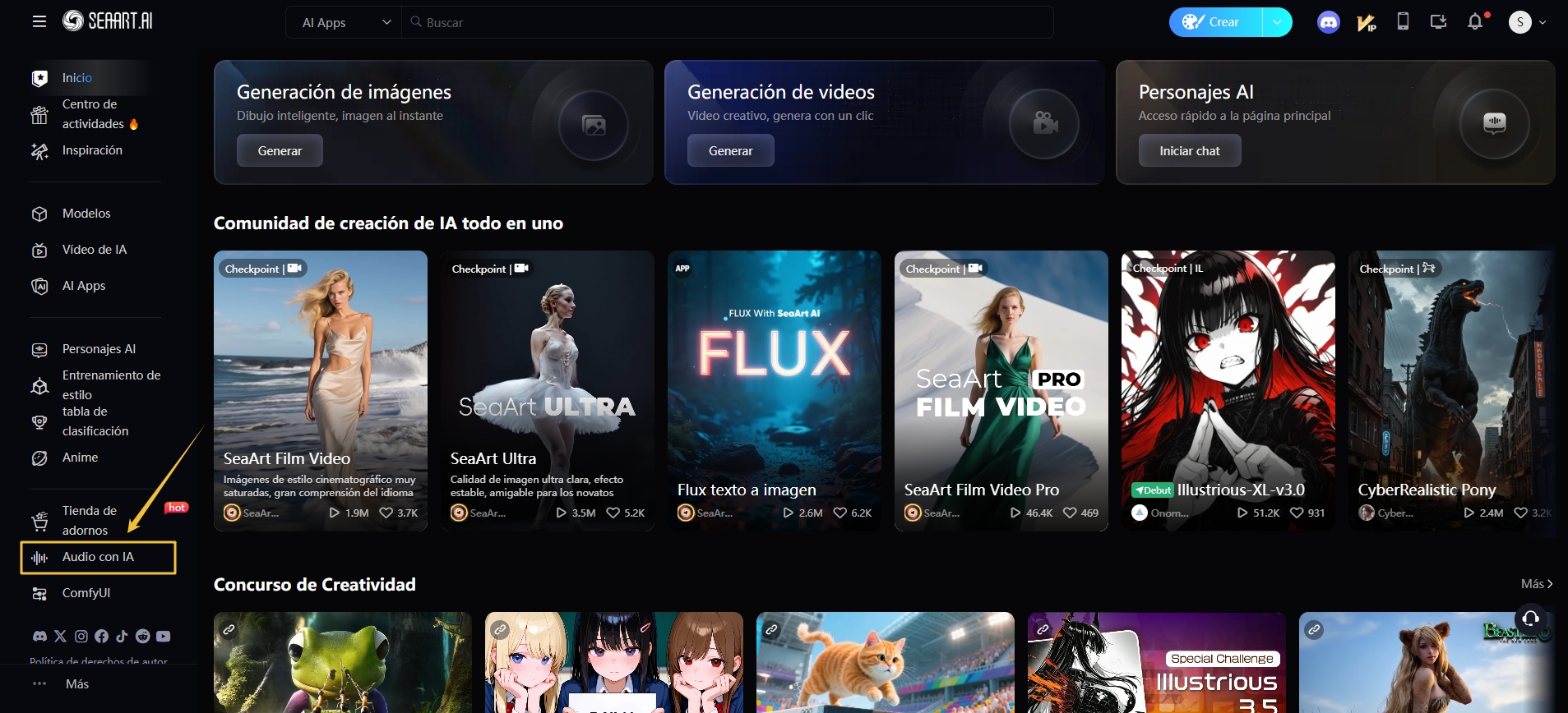 Haz clic en Audio con IA para acceder a la comunidad de audio.
