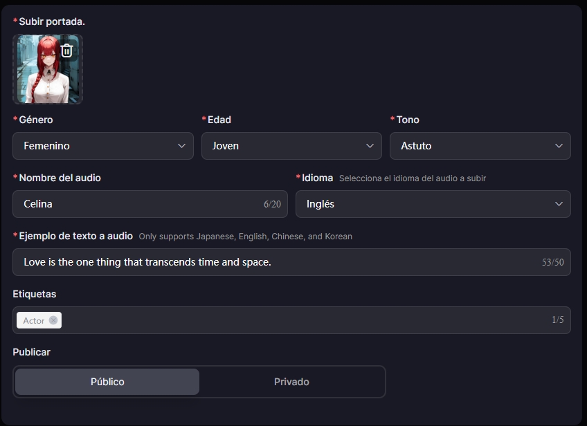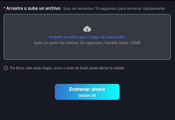 Nota: No subas música. Para mejores resultados, elige un audio con características vocales distintivas y sonido limpio, sin ruido de fondo.