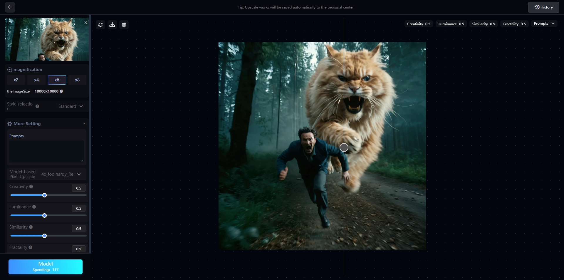 Una vez generada una imagen satisfactoria, haz clic en el botón de descarga en la esquina superior derecha para guardarla. Finalmente, se recomienda usar el Mejorador de imagen IA para añadir más detalles a la escena.