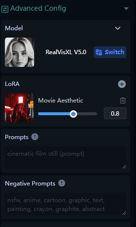 Abre Lienzo en tiempo real y ajusta primero los parámetros de generación de imágenes, seleccionando el modelo y la Lora adecuados.