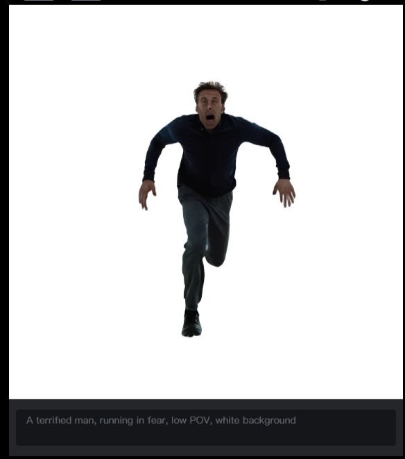 Prompt: Un hombre aterrorizado, corriendo con miedo, POV bajo, fondo blanco