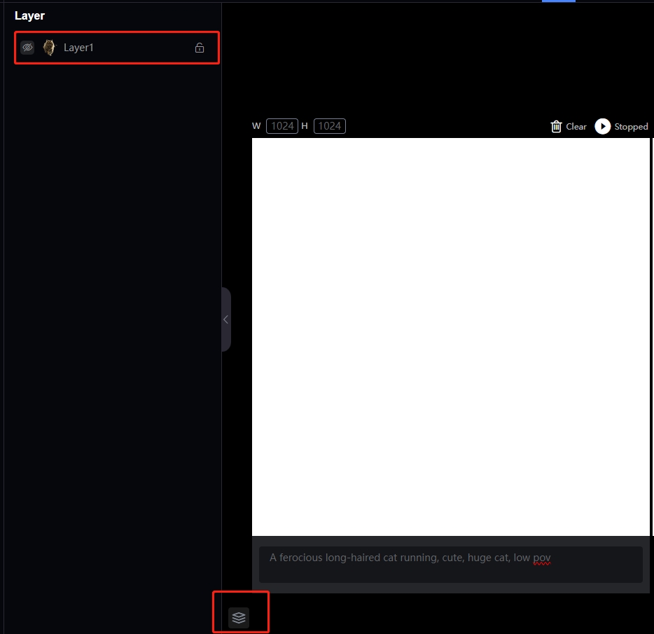 Después, haz clic en el botón de capas en la esquina inferior izquierda para abrir el panel de capas y pulsa el ícono del ojo para ocultar la capa del gato.