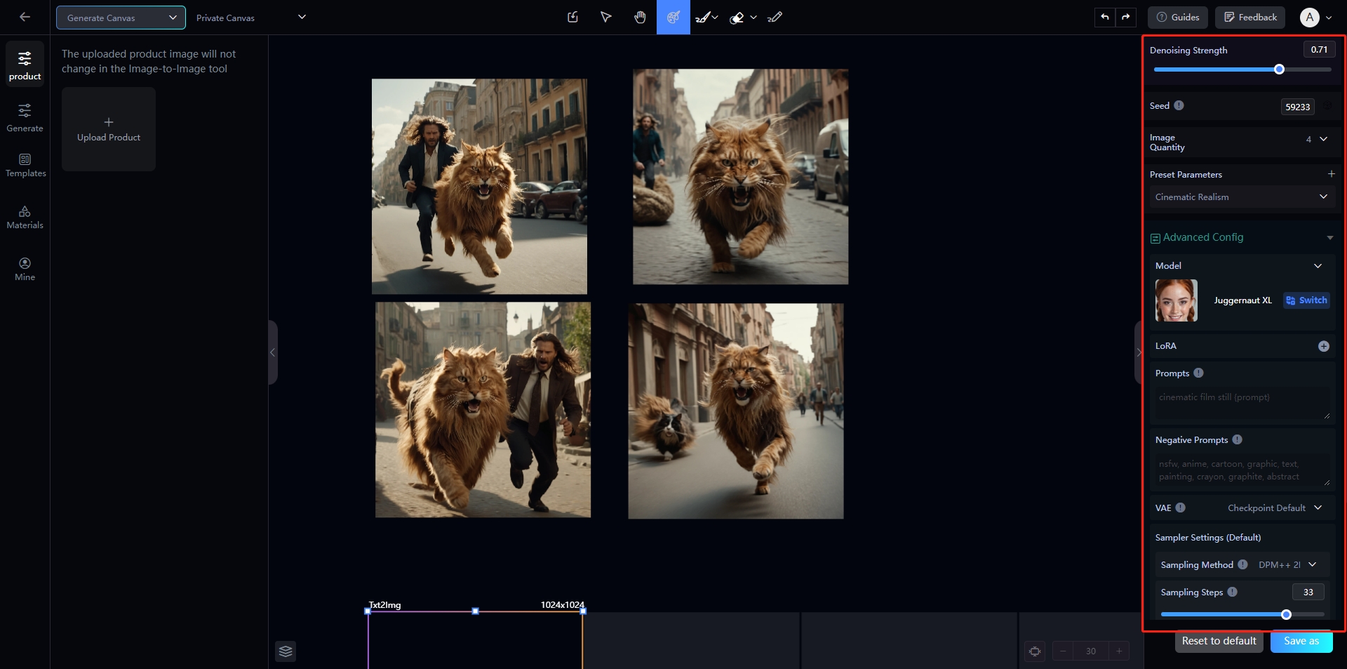 ¡Con SeaArt Canvas puedes ajustar claramente cada detalle hasta generar la imagen perfecta que tienes en mente!