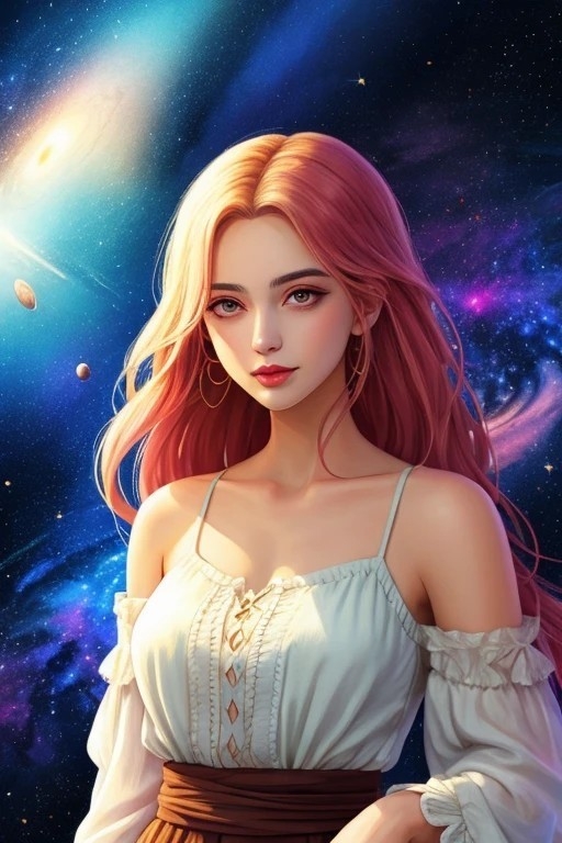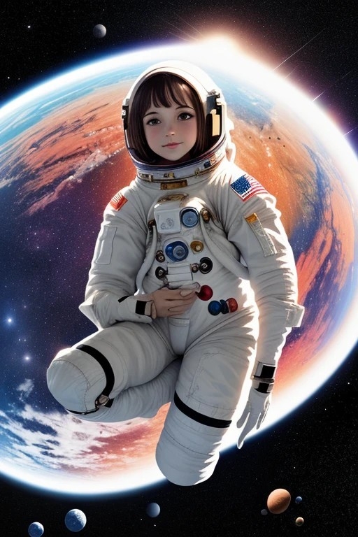 Podemos decir que queremos crear una ilustración de una chica en el espacio. A partir de la ilustración, 1 chica, el espacio