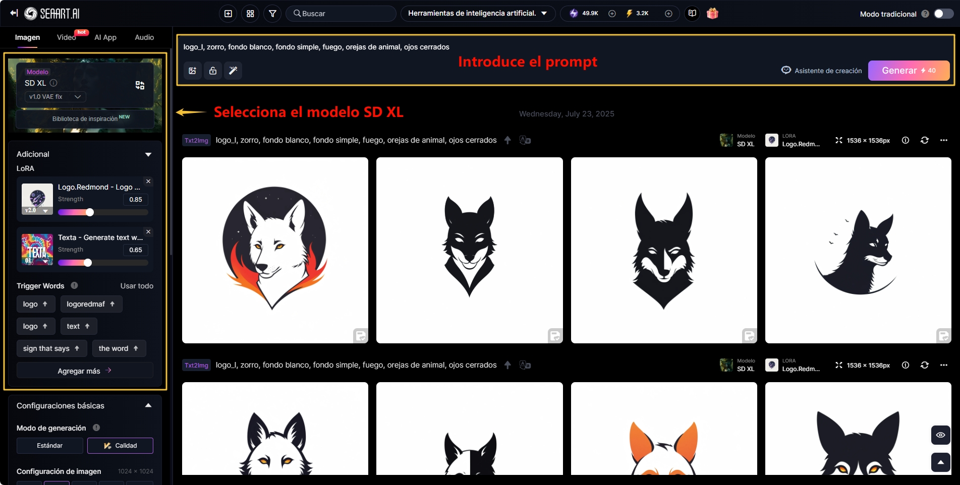 Podemos considerar el contenido del logo según nuestras necesidades e ingresar los prompts correspondientes.