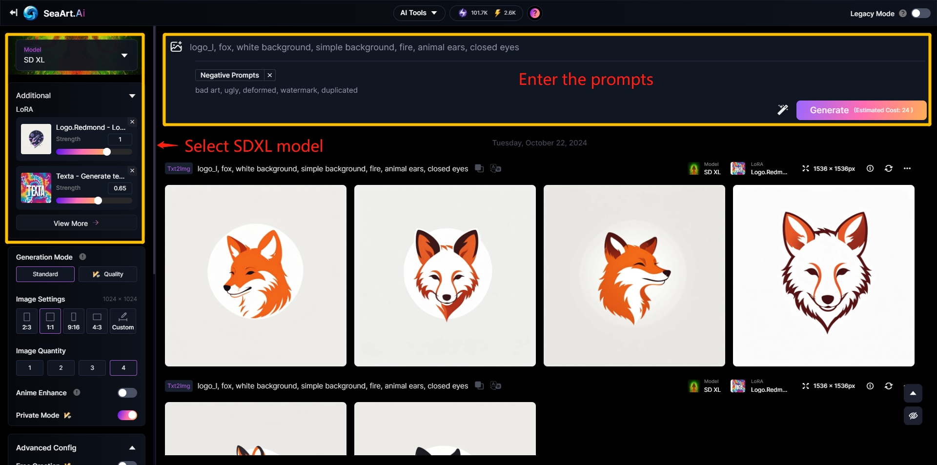 Abra o SeaArt.AI e selecione o modelo SDXL.