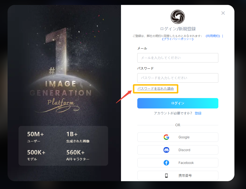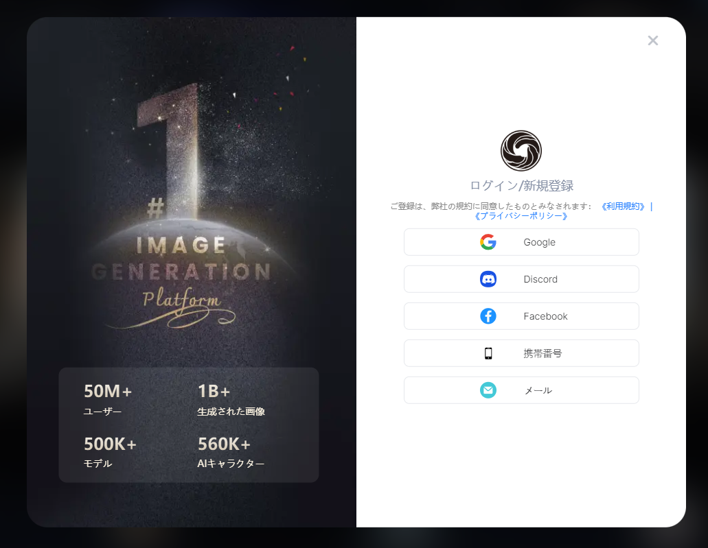 **ステップ2：** 適切な方法を選んでログインまたは登録してください。