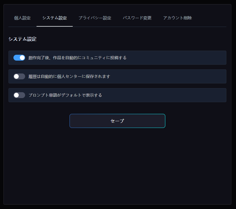 「作成」ボタンをクリック → 画像／動画を選択 → モデルを選択 → プロンプトを入力 → 「創作」ボタンをクリックして終了です。