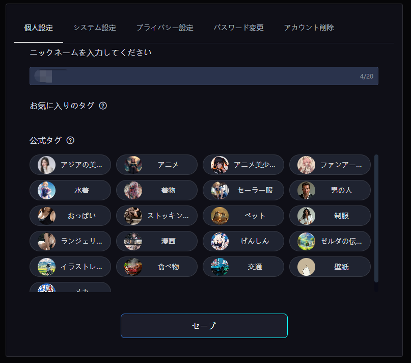 * ブックマークサイトのタグ設定