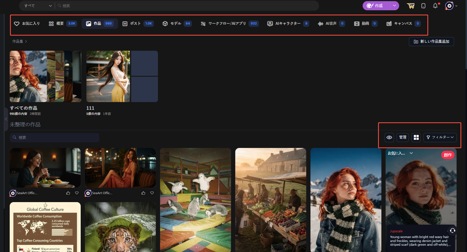 * フィルター： 条件別に作品を絞り込みできます。