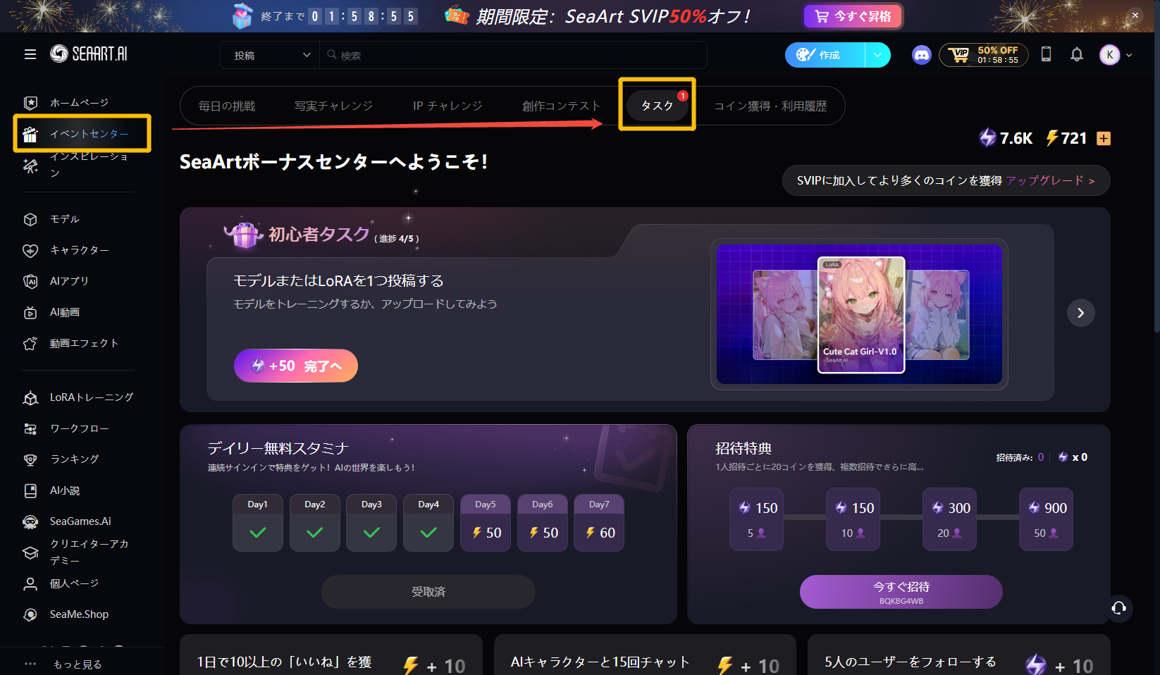 コインは期限が切れたりリセットされたりせず、SeaArtショップで購入できます。また、タスクを完了したり、コミュニティやウェブサイトのイベントに参加したりすることで、コインを獲得することもできます。