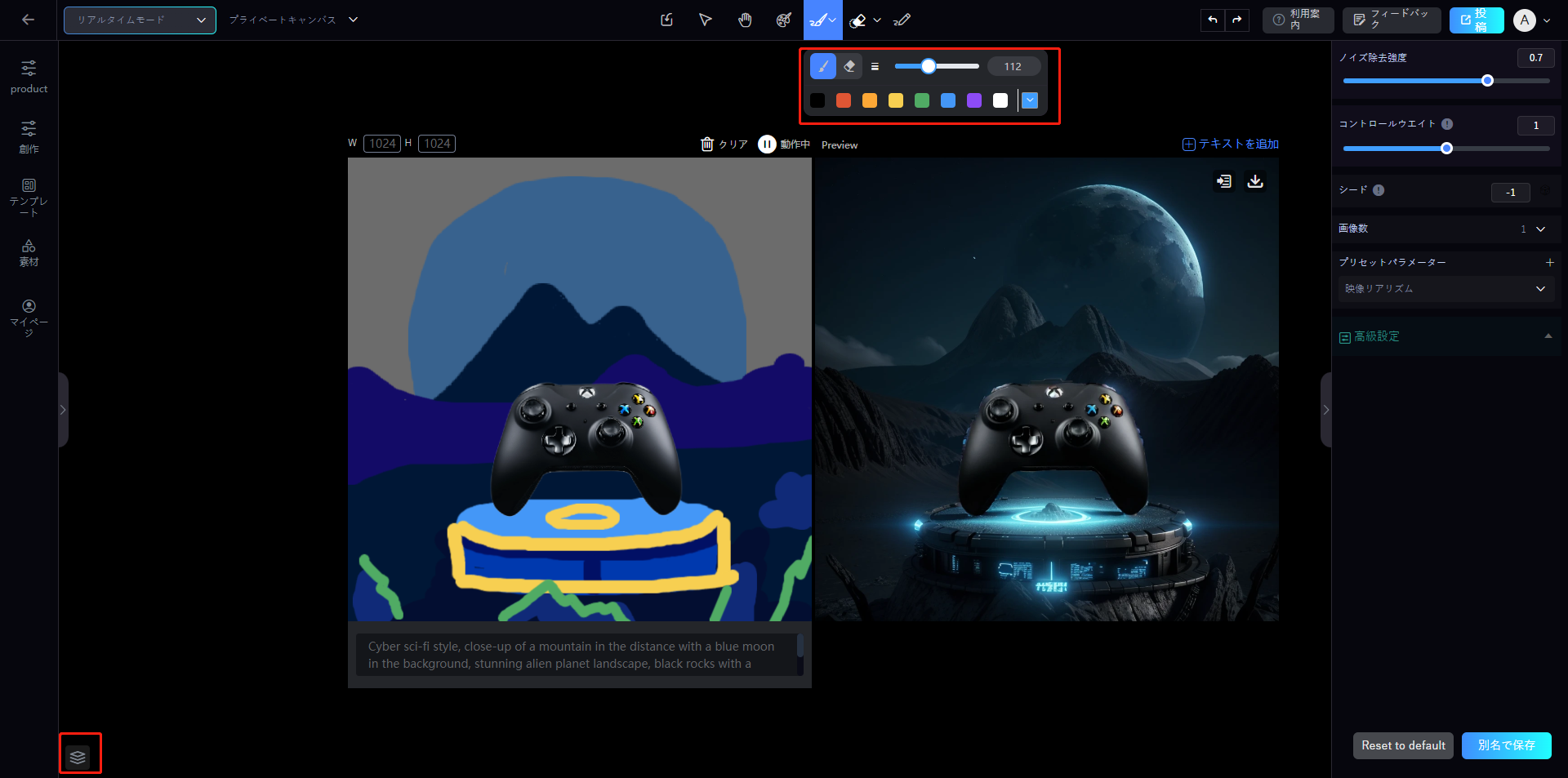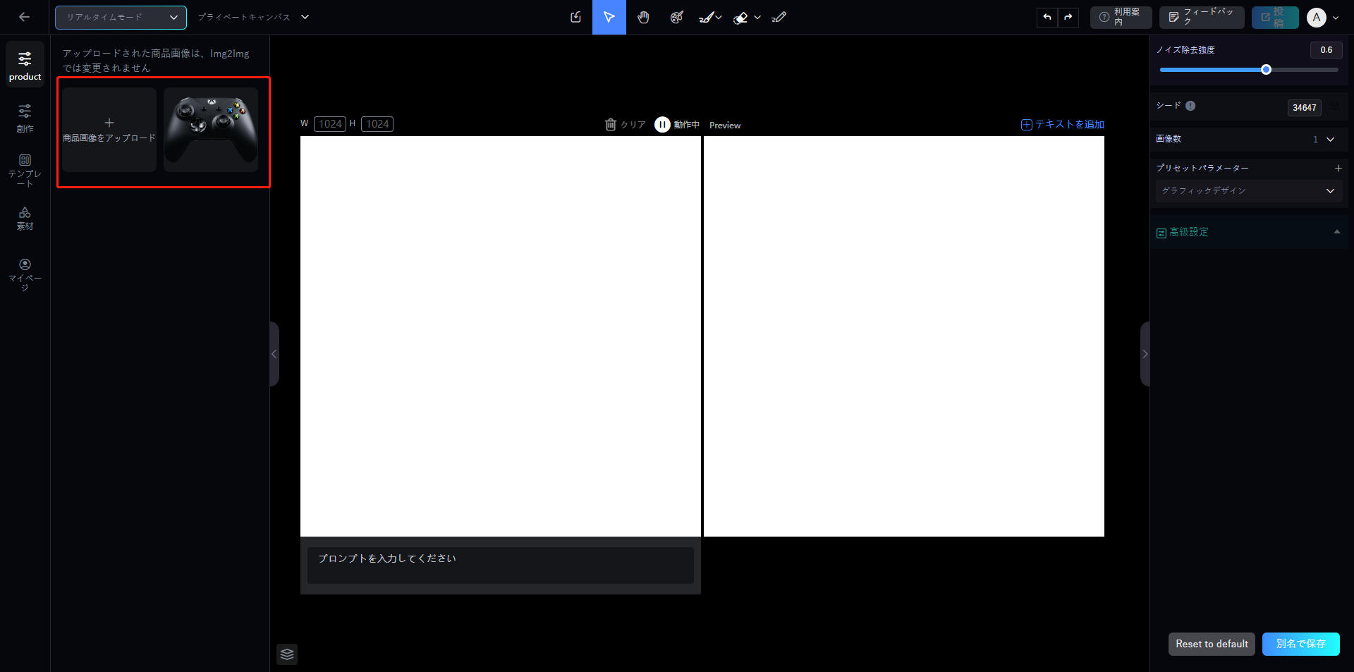 > **リアルタイムモード：**&#x30EA;アルタイムで画像結果を表示し、AI画像生成の制御不能な問題に対応するための調整を行うことができます。